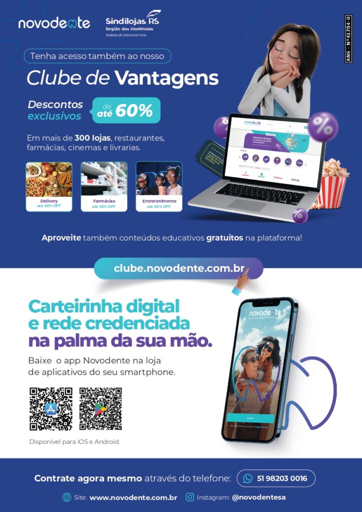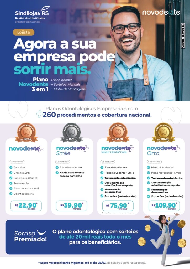Com o objetivo de oferecer mais qualidade de vida aos seus associados, o Sindilojas Região das Hortênsias firmou parceria com a Novodente Planos Odontológicos, que atua há mais de duas décadas proporcionando atendimento de excelência com produtos acessíveis de alta qualidade.
